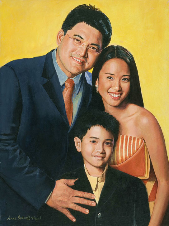 Fees begin at $7500 for a single subject. Additional subjects in the same painting are $1500. Fees increase for such elements as elaborate backgrounds, borders, and clothing. The exact price will be discussed and contracted for before work begins.